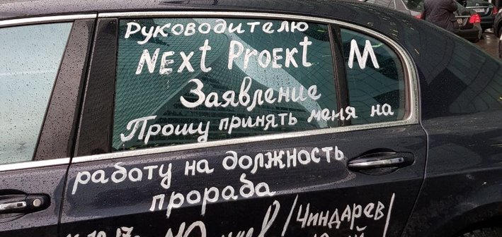 «Подойдя к своему автомобилю, после трудного понедельника, обнаружил заявление от настойчивого сотрудника, который очень хотел устроиться на работу в «Next Proekt M»: «Прошу принять на работу, на должность-прораба». Изначально меня это очень сильно разозлило, я был в гневе, потому что автомобиль у меня не дешевый, но после того, как прочитал все надписи, был приятно удивлен, что даже заснял все на видео», - заявил генеральный директор компании «Next Proekt M» Марк Рафитович.