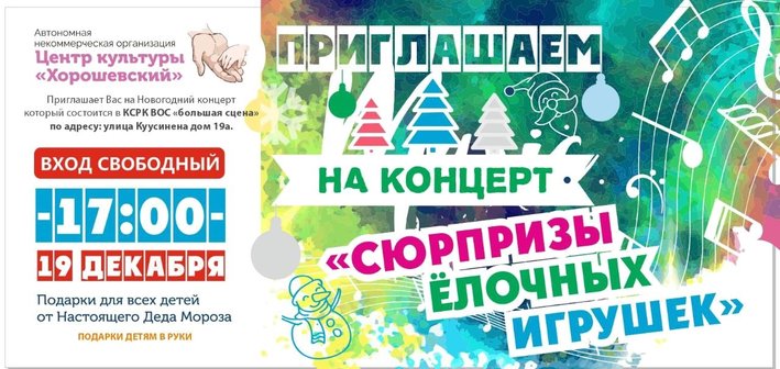В канун наступающего Нового года Большая сцена московского Культурно-Спортивного Реабилитационного Комплекса Всероссийского Общества Слепых 19 декабря станет площадкой для проведения праздничного творческого мероприятия-концерта «Сюрпризы елочных игрушек». Все желающие, независимо от возраста, приглашаются его посетить в 17:00 по адресу: ул. Куусинена, д.19 а.
