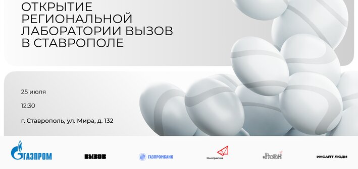Региональная лаборатория Молодежного сообщества ВЫЗОВ начнет свою работу 25 июля в Ставрополе по адресу: ул. Мира, д. 132. Для гостей будет организован воркшоп с участием приглашенных экспертов Алексея Нечаева, Сергея Каныгина и Максима Шиянова.