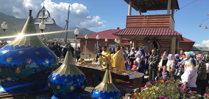 20 августа В Усть-Неры освятили и подняли новые купола и кресты на Церковь Успения Пресвятой Богородицы