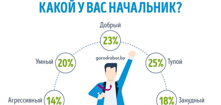 По данным опроса поисковой системы вакансий GorodRabot.by, 43% белорусов ценят своих начальников за положительные качества, а 57% видят в руководителях прежде всего отрицательные черты характера.