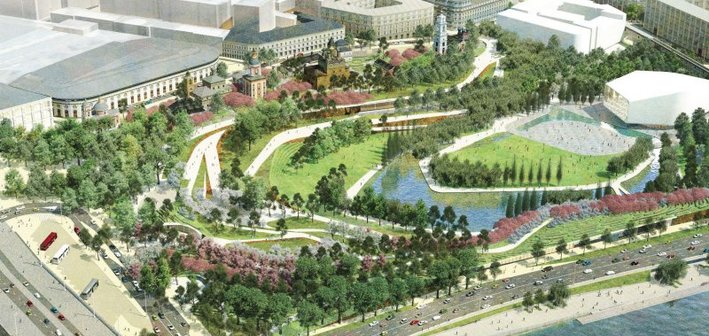 Американское архитектурное бюро Diller Scofidio + Renfo выиграло конкурс правительства Москвы с проектом парка «Зарядье». Современный живописный сквер будет расположен в самом центре российской столицы — сразу за Собором Василия Блаженного. Американо-российская команда, выигравшая конкурс по решению главного архитектора Москвы Сергея Кузнецова, намерена построить рядом с Красной площадью парк в стиле современного урбанизма.