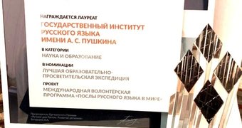 Проект Института «Международная волонтёрская программа «Послы русского языка в мире» победил в номинации «Наука и образование».