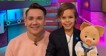 Мировой рекордсмен, самый молодой певец в мире Лев Соловьев в гостях у легендарного Хрюши в программе "с Добрым утром малыши".