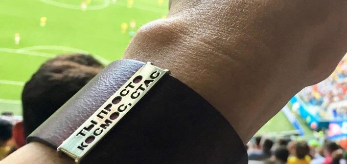 Один из вариантов: просто посмотрите на руку с браслетом с клипсой-талисманом, и вот он – гул трибун, хор – «Россия! Россия! Нужен гол!», и конечно, «Ты просто космос, Стас!».