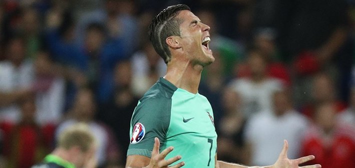 Игрок сборной Португалии Криштиану Роналду радуется победе в матче 1/2 финала чемпионата Европы по футболу - 2016 между сборными командами Португалии и Уэльса