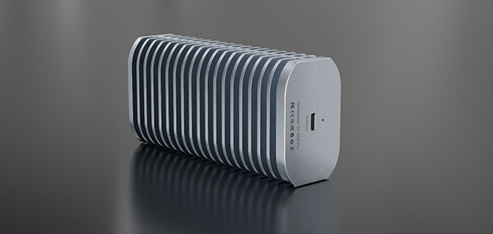 D1 SSD Pro имеет корпус из аэрокосмического алюминиевого сплава, точно обработанный с использованием технологии цельного фрезерования CNC, что обеспечивает отличную прочность и теплорассеивание. Пассивная система охлаждения без вентилятора гарантирует по-настоящему бесшумную работу, а премиальная матовая пескоструйная поверхность обеспечивает приятное тактильное ощущение и сдержанный, изысканный внешний вид. Его объем составляет всего около 80% от аналогичных продуктов на 80 Гбит/с, что делает его компактным и легким, легко помещается в карман и превращается в высокопроизводительную мобильную рабочую станцию в любое время и в любом месте.