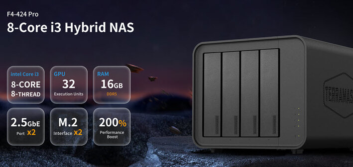 4-отсековый мощный NAS с процессором Intel i3 8 ядер и 32 ГБ DDR5 F4-424 Pro