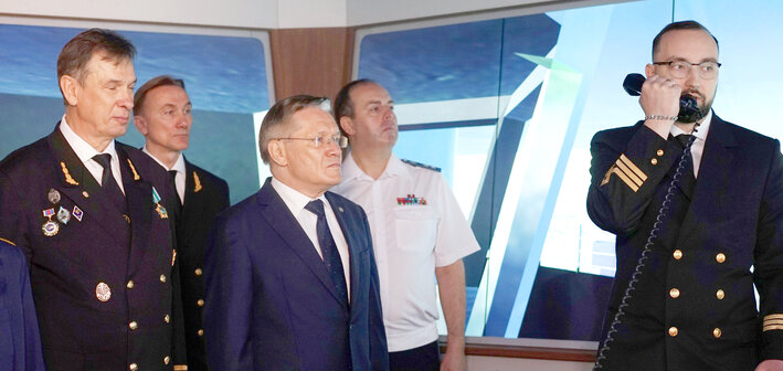 Тренажер, поставленный Инженерно-техническим центром «ДЖЭТ», был открыт символическим переводом ручек телеграфа в положение «полный вперед». Говоря о его значении для арктического судоходства, генеральный директор ООО «ЭМЦТ» Эдуард Пичугин подчеркнул: «Это не просто учебное оборудование, а цифровой двойник арктической навигации. Точные копии всех бортовых систем ходовой рубки атомного ледокола, навигационного оборудования и автоматики управления энергетической установкой, а также фотореалистичная виртуальная среда создают эффект полного погружения. Такой уровень детализации и реализма впервые доступен для системной подготовки экипажей арктического флота».