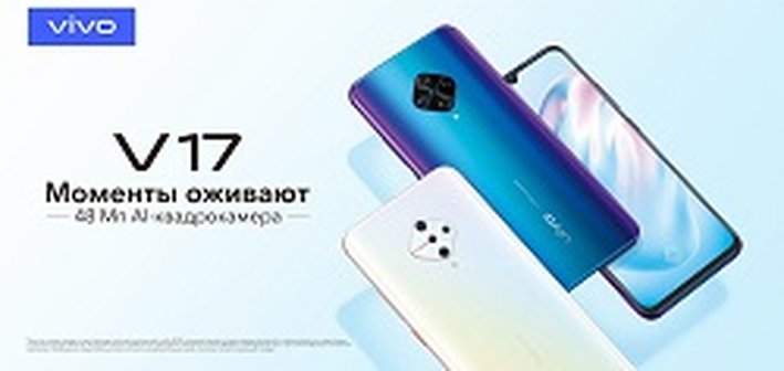 Компания vivo официально представляет смартфон V17. Модель с 48 Мп AI-квадрокамерой, модулем NFC и селфи-камерой на 32 Мп поступит в продажу 6 декабря по цене 22 990 рублей. Каждый покупатель, оформивший предзаказ на новое устройство, получит в подарок смартфон vivo Y11.